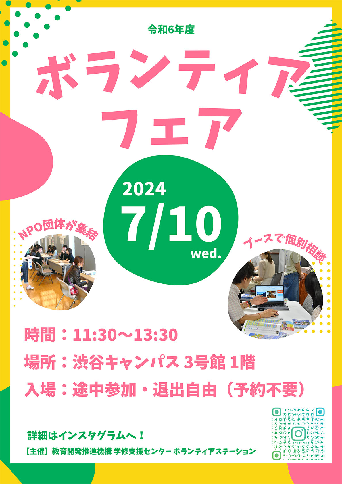 主催:教育開発推進機構ボランティアステーション(百周年記念館1階)