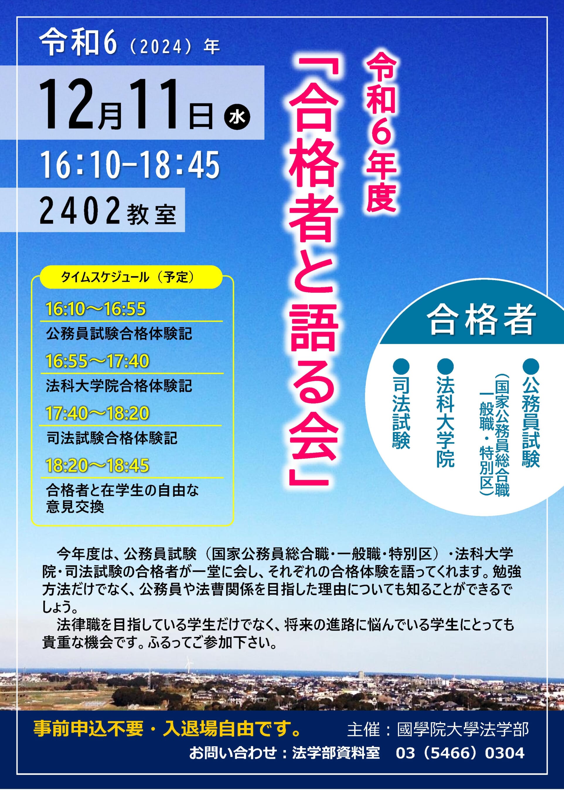 法律職を目指している学生だけでなく、将来の進路に悩んでいる学生にとっても貴重な機会です。ふるってご参加ください。