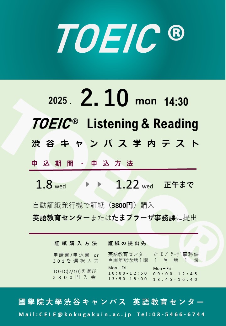 ③R6年度TOEIC学内テスト(2月10日渋谷)を選択