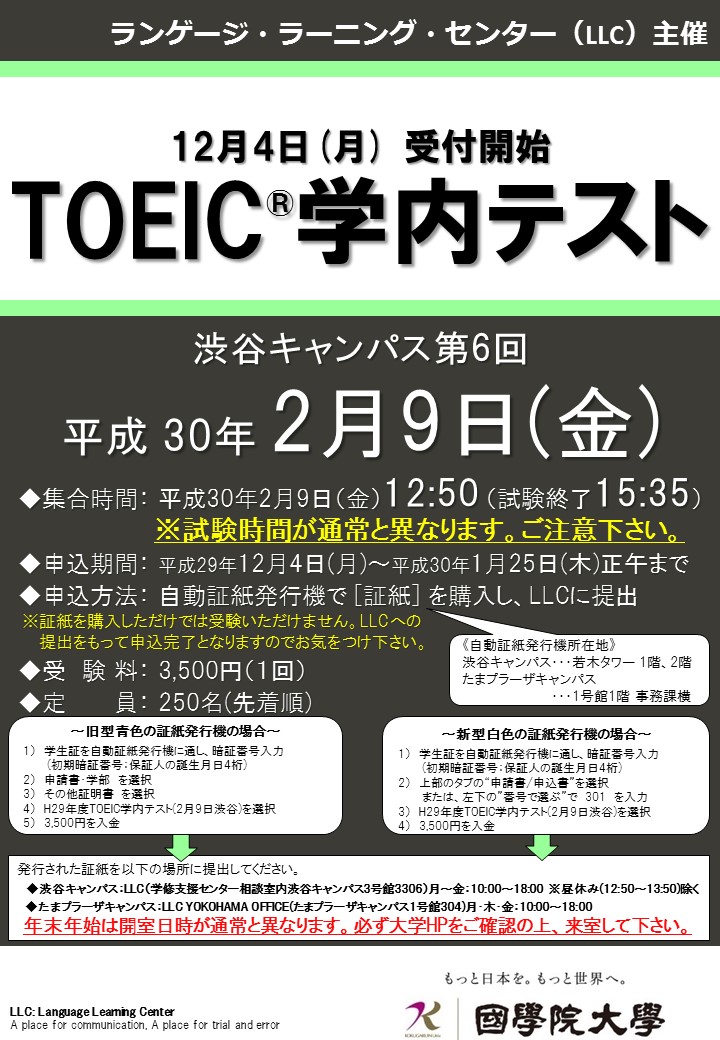 4)H29年度TOEIC学内テスト(2月9日渋谷) を選択