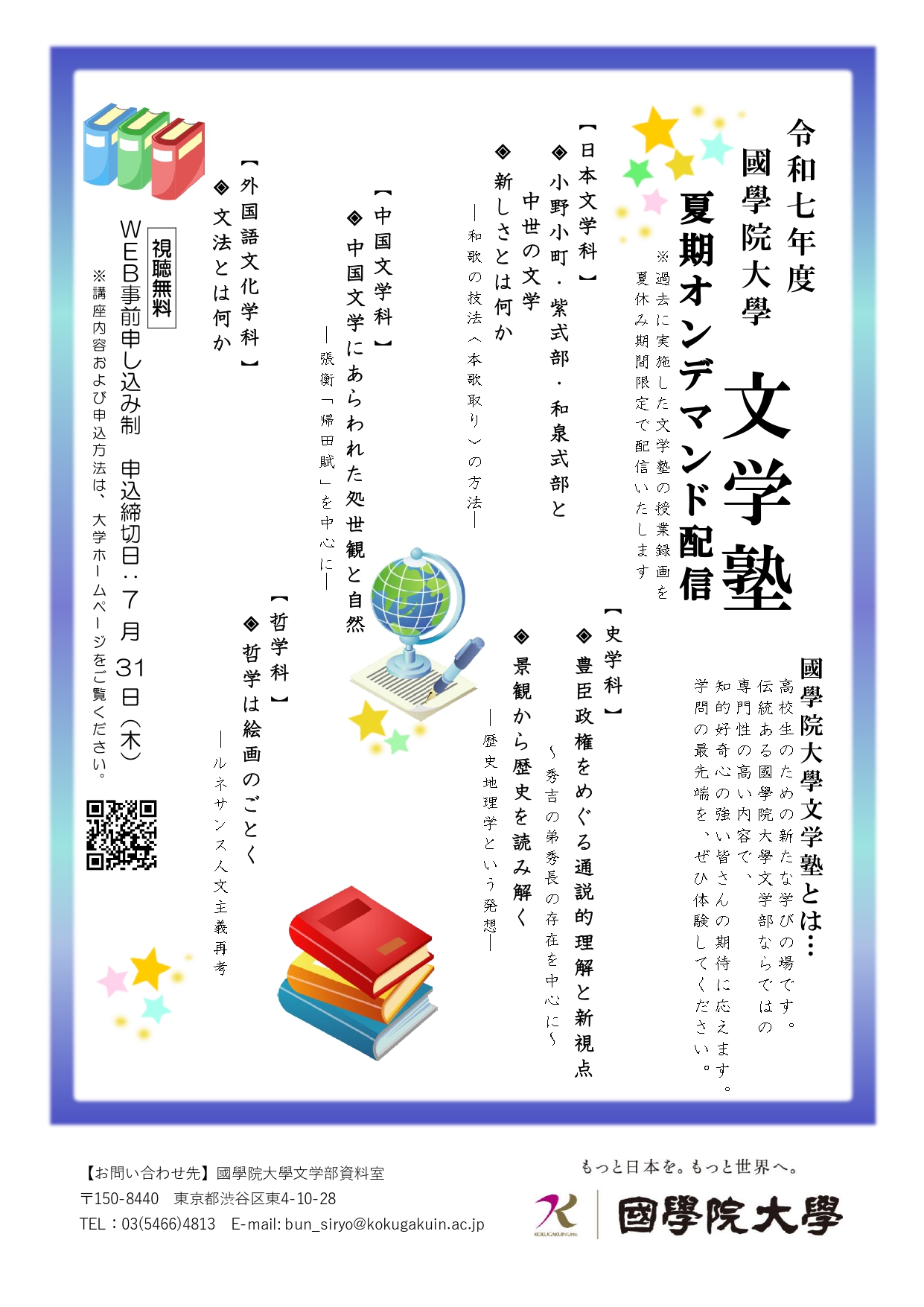 令和7年度文学塾夏期オンデマンド配信チラシ〔PDF形式〕