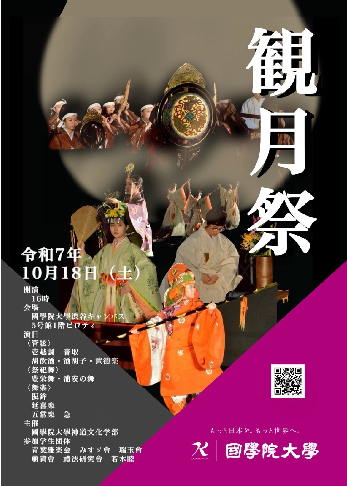 観月祭とは、供物を献じて十五夜の満月を鑑賞する「中秋観月」に由来する行事です。國學院大學では、平成22年から、毎年10月に斎行されてきました。
