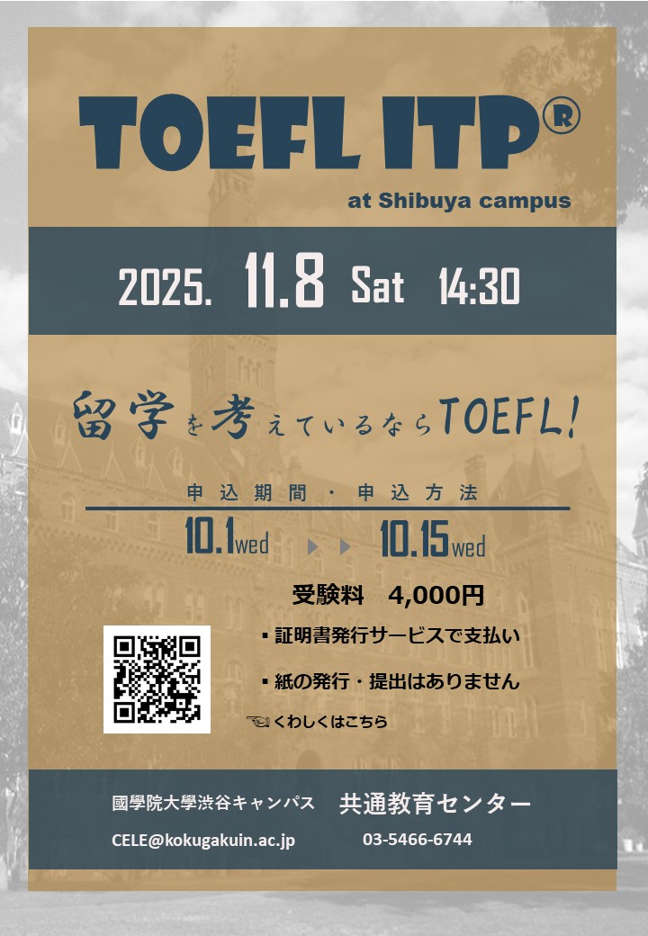 共通教育センターでは、令和7年11月8日(土)に TOEFL ITP学内テストを実施いたします。