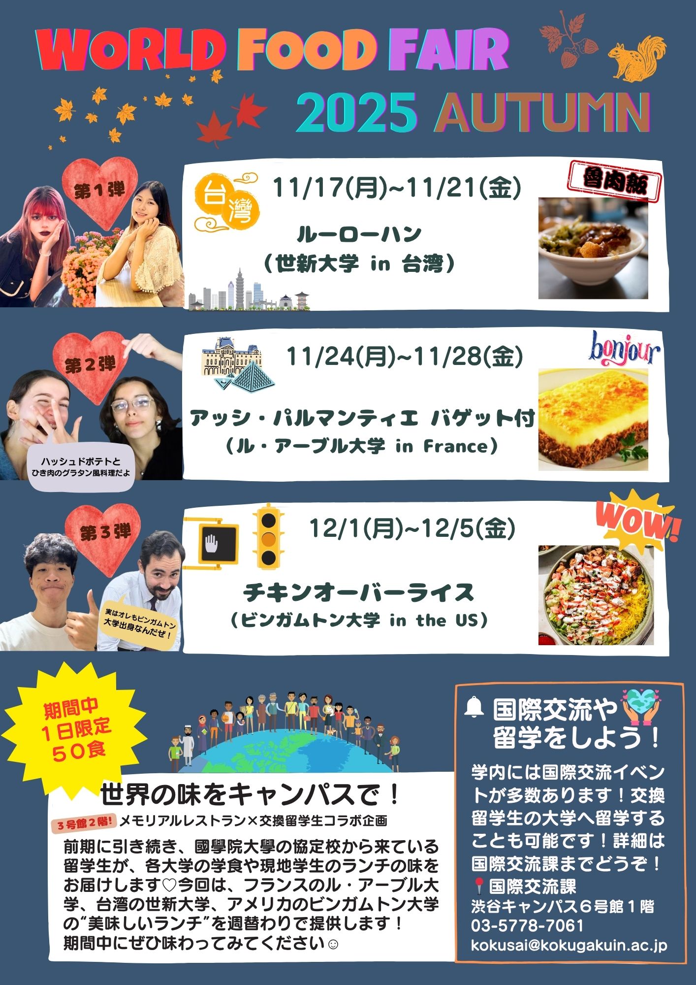 前期に大好評だったWORLD FOOD FAIRを後期も開催することとなりました!