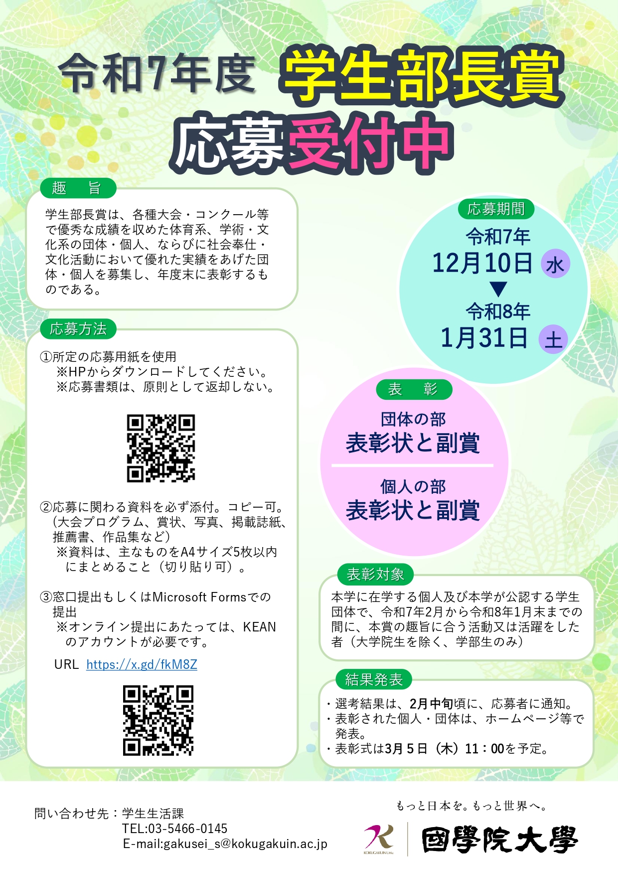 令和7年度 学生部長賞 募集要項