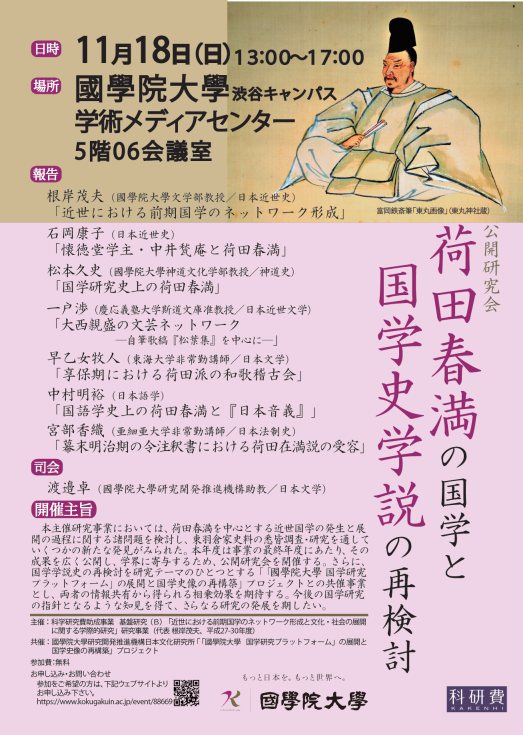 【共催】國學院大學研究開発推進機構日本文化研究所 「「國學院大學 国学研究プラットフォーム」の展開と国学史像の再構築」研究事業