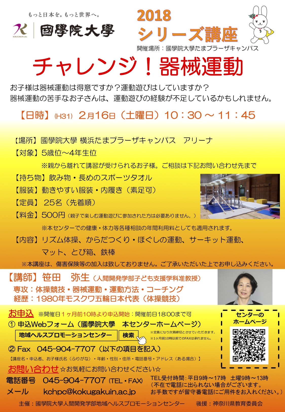 お申込はこちらから! ※開催日1ヶ月前10時より申込開始 「チャレンジ!器械運動」申込フォーム ※1月16日午前10時よりお申込を開始致します。 ※本講座は終了致しました。ありがとうございました!