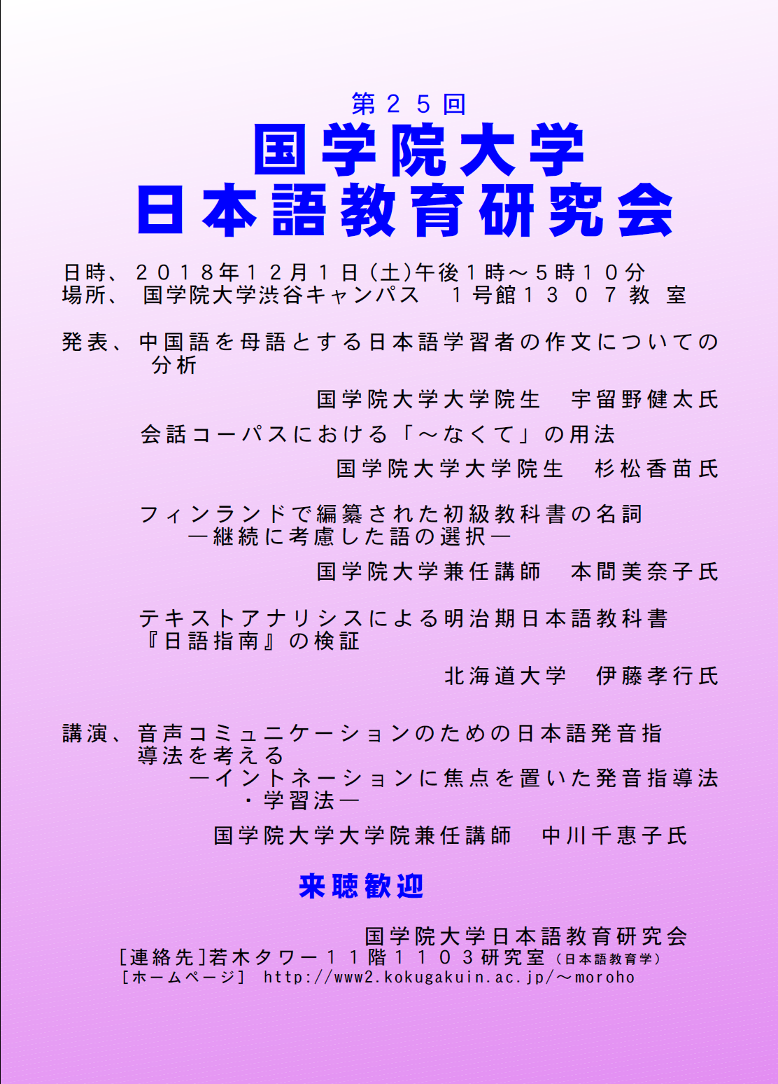 第25回 国学院大学日本語教育研究会を下記の通り開催いたします。