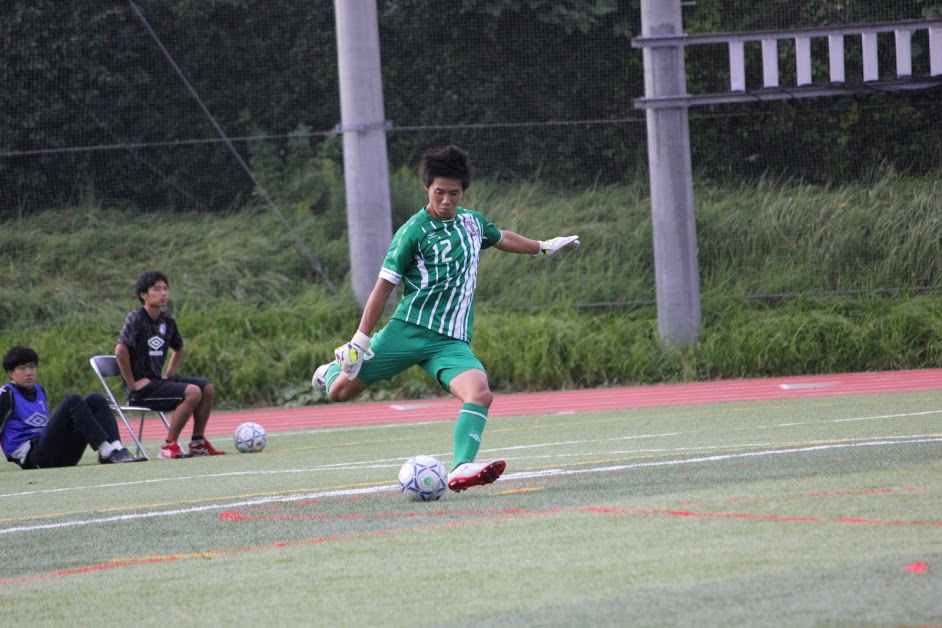 現在3位に付けている本学は、参入戦に向けて是が非でも勝ちたい試合は立ち上がりから相手ペースで試合が進んでいきます。前半5分、左サイドを突破されると、強引にシュートまで持ち込まれますが、ゴールキーパーの浅川将輝君(健体3)が防ぎます。