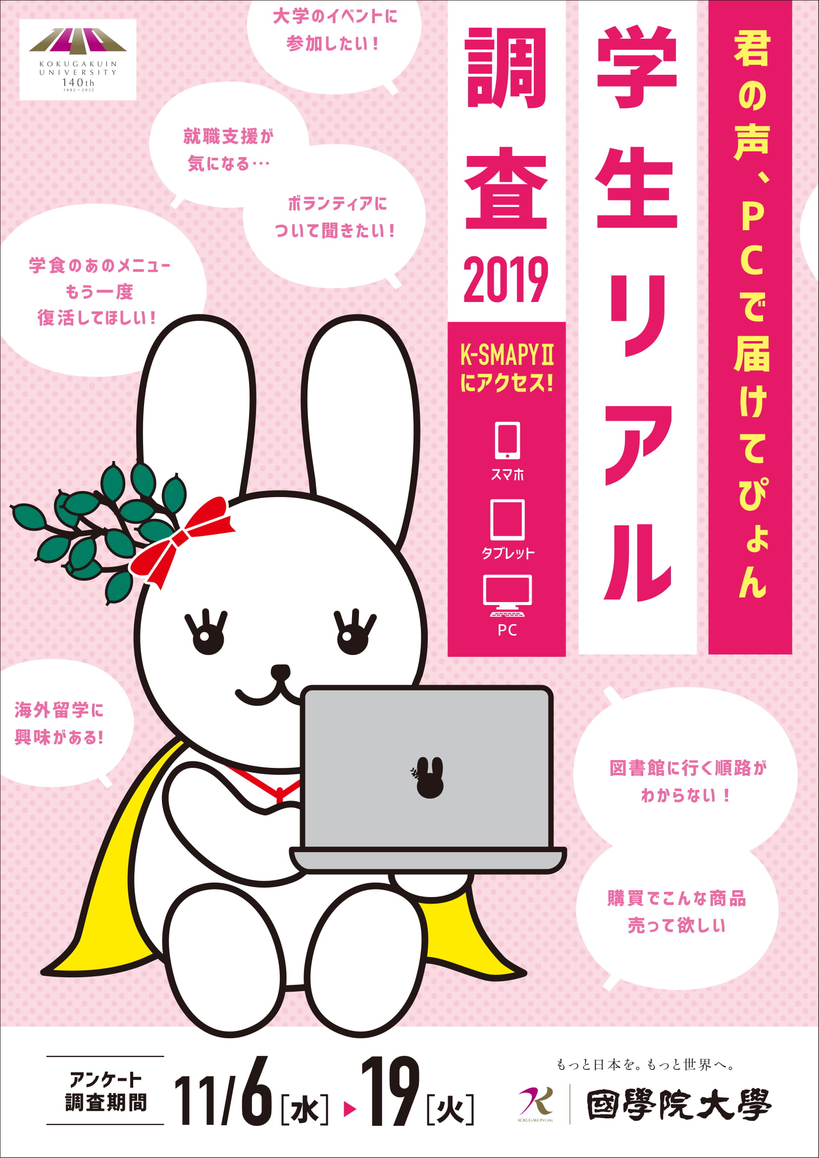 是非、今年度も皆さんの大学生活のことや日頃感じていることを、聞かせてください。