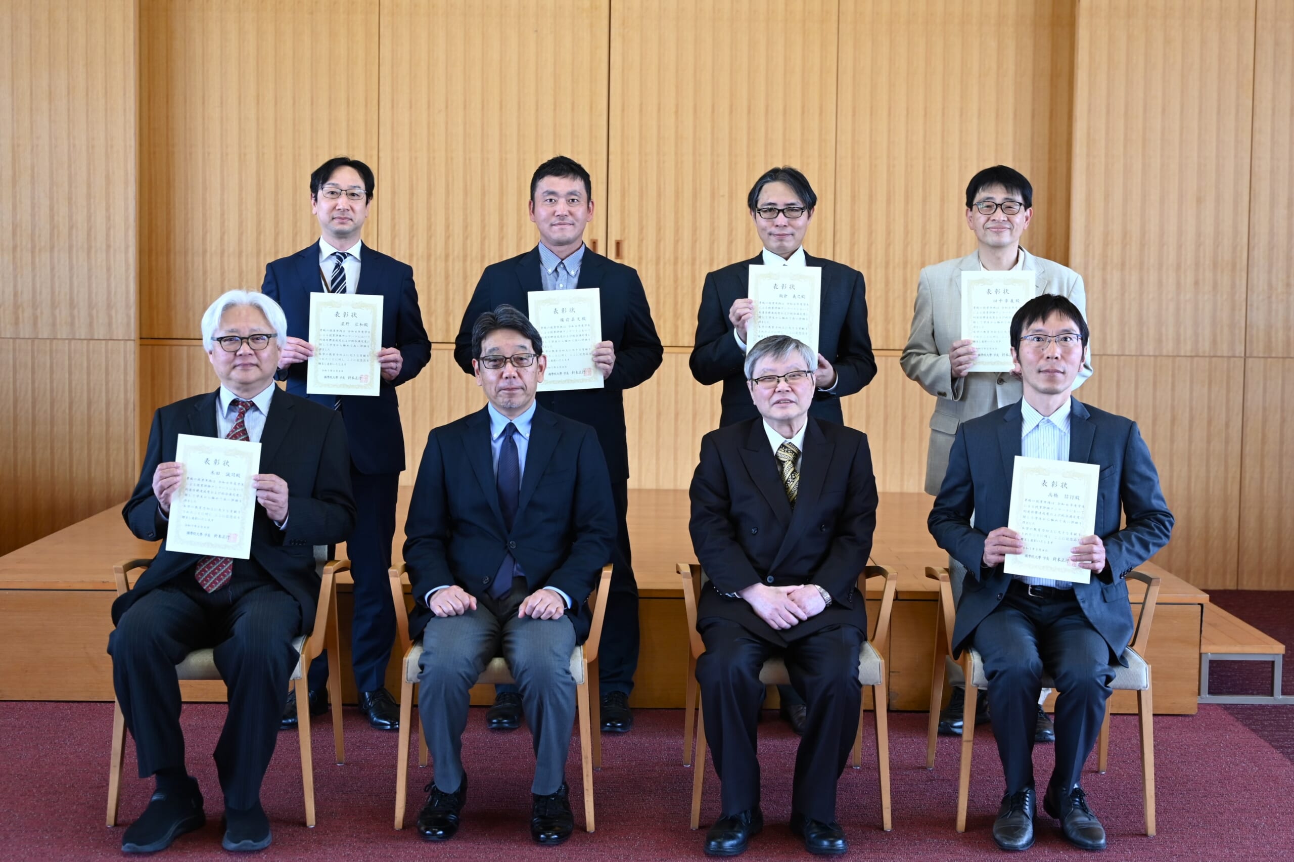 令和6年度は10人(文学部2人・ 法学部1人・経済学部1人・神道文化学部1人・人間開発学部1人・観光まちづくり学部1人・兼任講師3人)の教員に贈られ、本日の表彰式には受賞者のうち6人が参加しました。