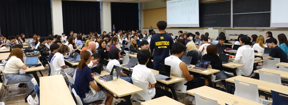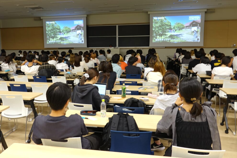 9/25(木)5限1411教室において、8月に行われた初等教育学科必修科目「野外活動実習」の事後指導が行われました。まずは3日間の活動を動画で振り返りました。