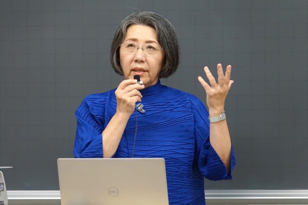 第2部は、初等教育学科長田恵理教授を研究代表者とした、令和6年度人間開発学部 学部共同研究「教員養成課程における模擬授業の在り方」の成果報告です。健康体育学科大矢隆二教授による報告も交えて行われました。