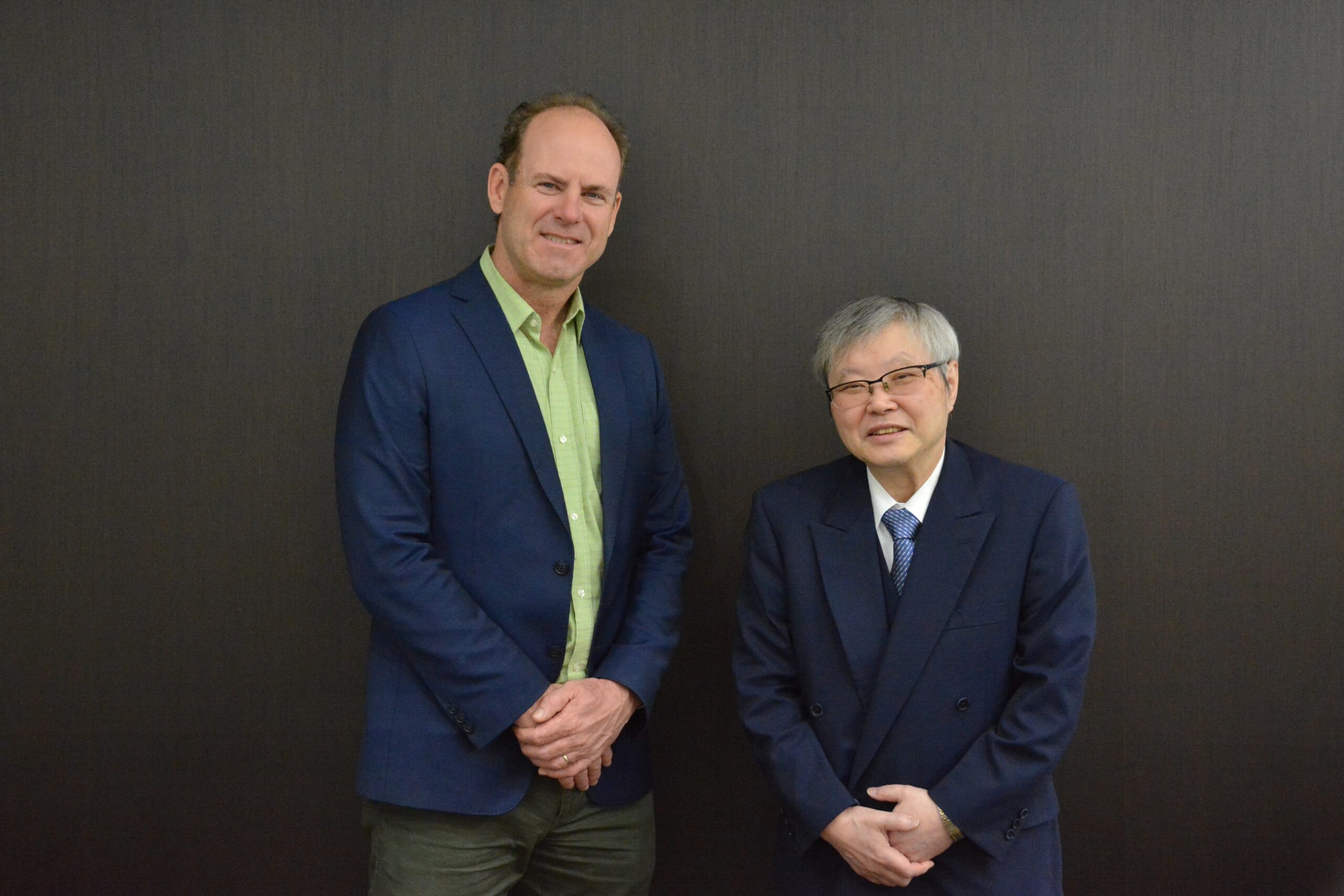 キャンパスを訪れたJake氏は針本正行学長と会談を行いました。針本学長から留学中の本学学生たちの様子について質問がなされると、Jake氏は「國學院大學の学生は、周囲の人と積極的に関わって活動している。私どもとしても光栄である」とお話しいただきました。