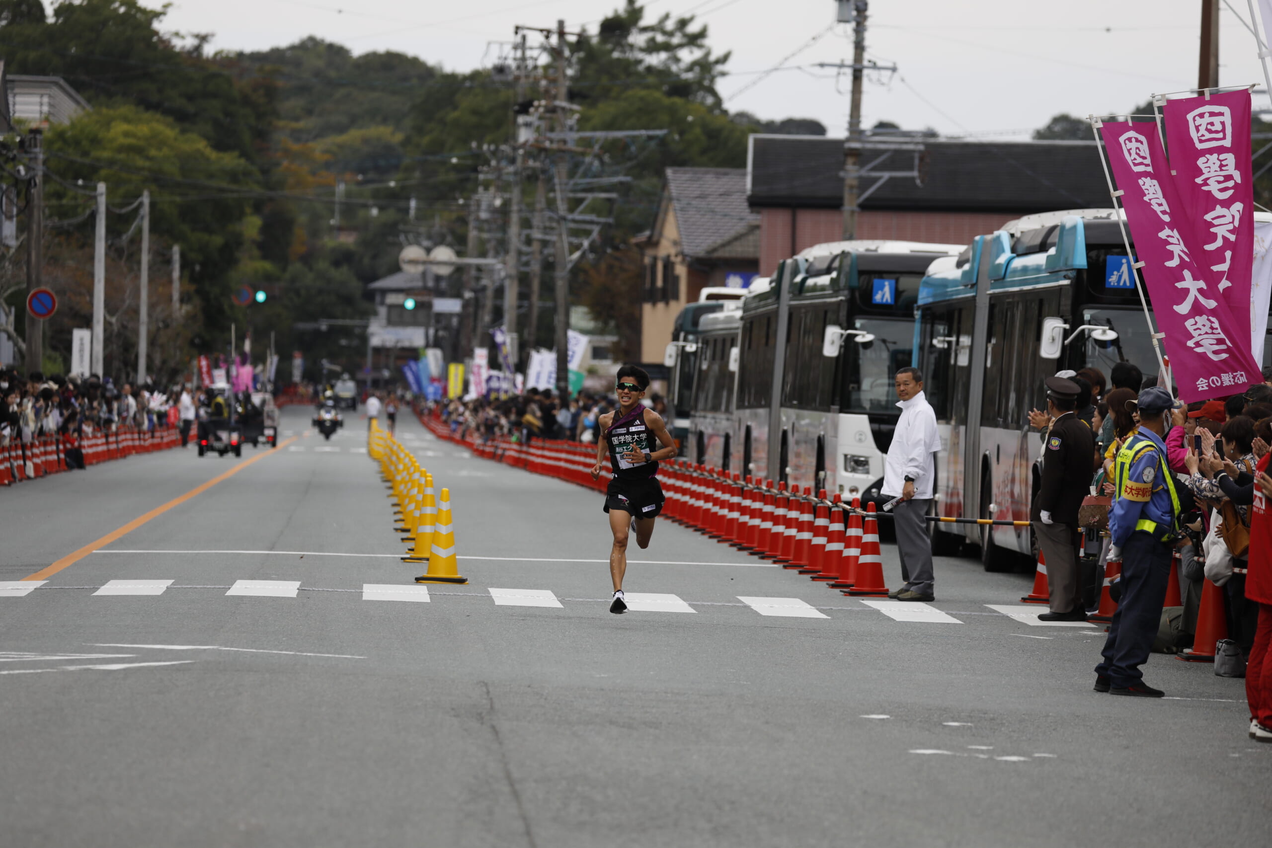 レースは、1区の尾熊迅斗選手(健体2)が上位で繋ぎましたが、2区の辻原輝選手(史3)が粘りを見せましたが、7位まで順位を落としました。しかし、3区の野中恒亨選手(健体3)が他校の留学生に競り勝ち、区間賞の快走で一気に2位へ浮上。4区の高山豪起選手(法4)が2位を維持し、5区の飯國新太選手(法2)は猛追を受けながらも粘りの走りを見せました。三大駅伝初出走の6区浅野結太選手(経済2)は区間4位の粘走を見せましたが、7区の青木瑠郁選手(健体4)が調子を上げられず、順位を1つ落としました。最終8区の上原琉翔選手(健体4)は、レース序盤で一時3位に再浮上する粘りを見せましたが、終盤の差し込みの影響もあり、最終的に総合4位でゴールいたしました。