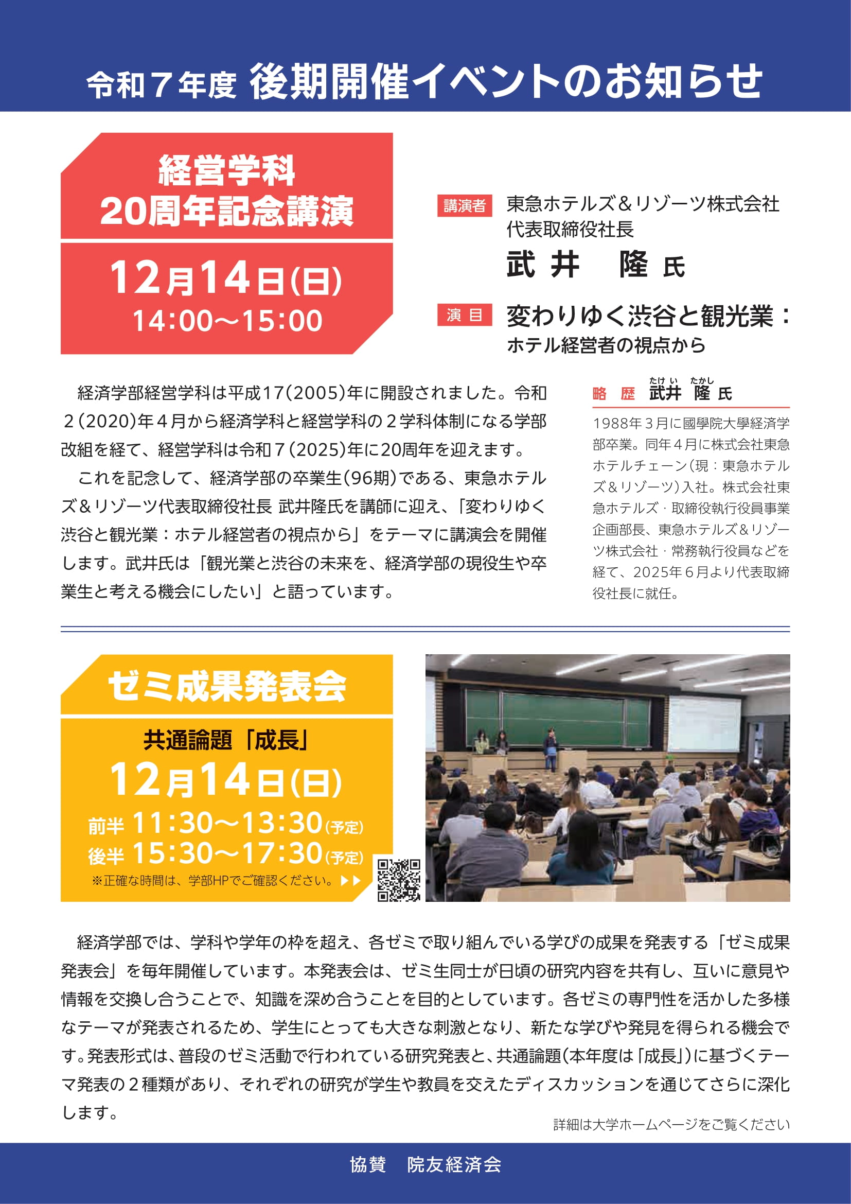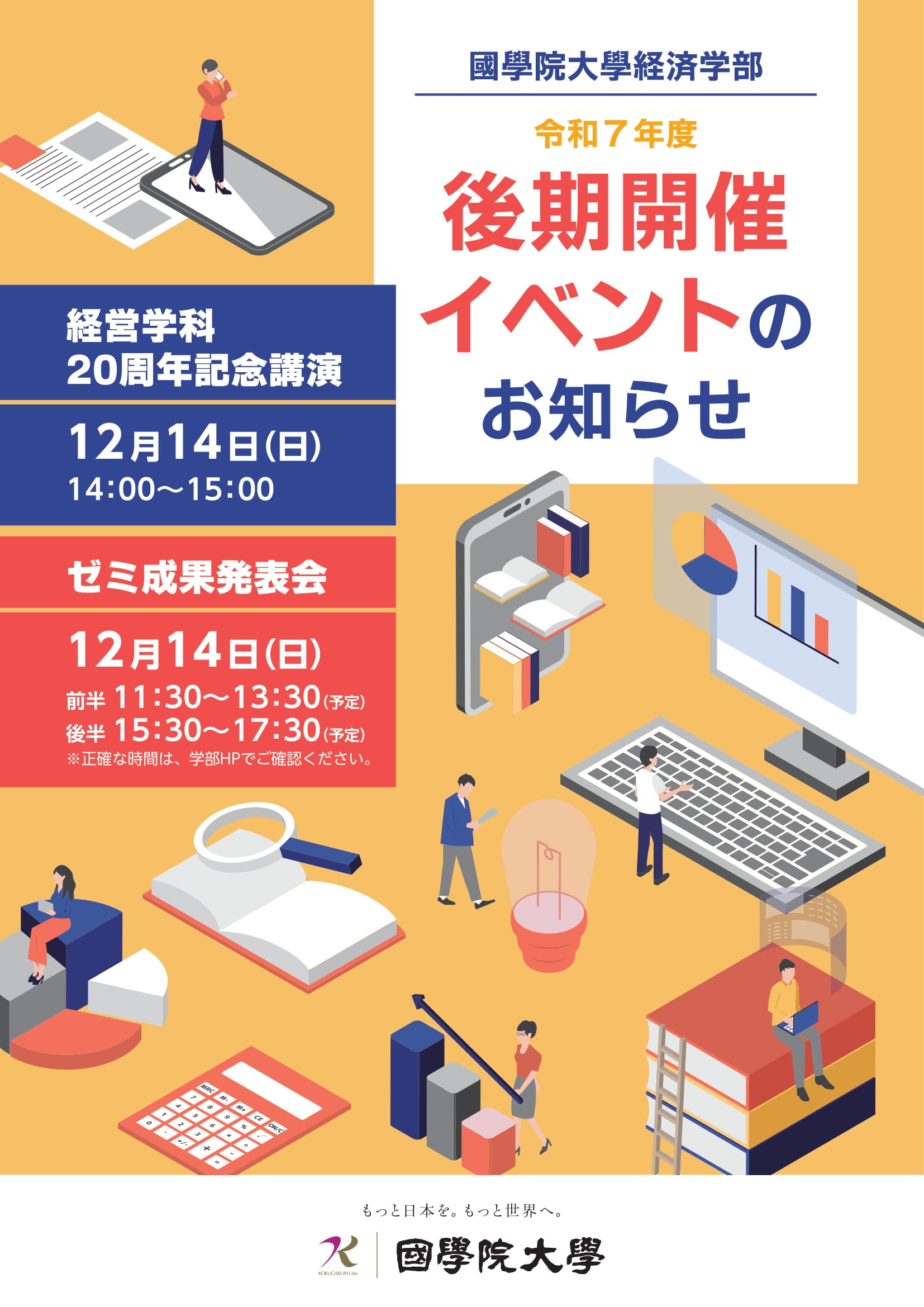 國學院大學経済学部では、経済や経営をテーマとした講演会やシンポジウムを毎年実施しております。