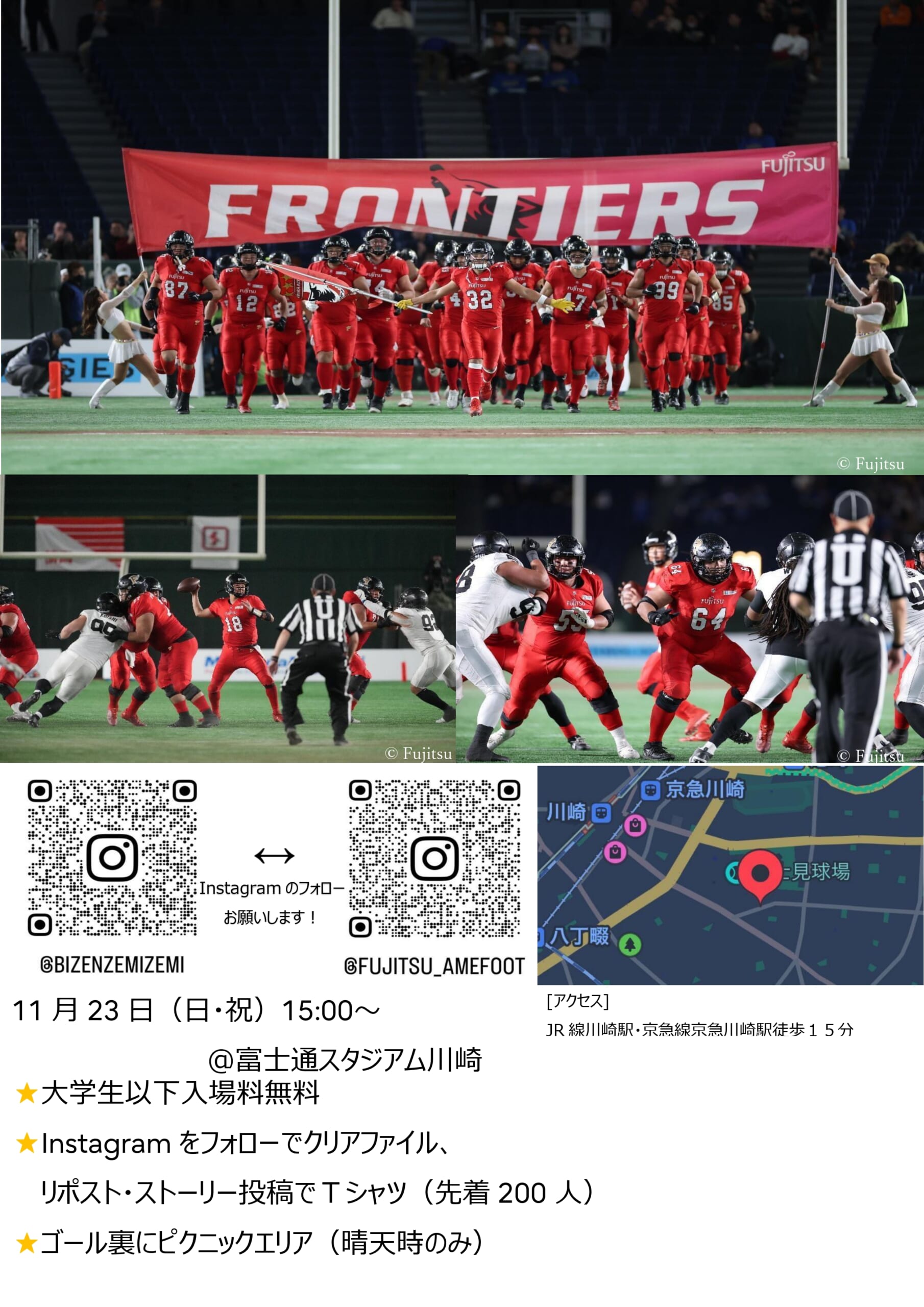 11月23日(日祝):【アメリカンフットボール】QUARTER FINAL 富士通フロンティアーズ VS 相模原ライズ