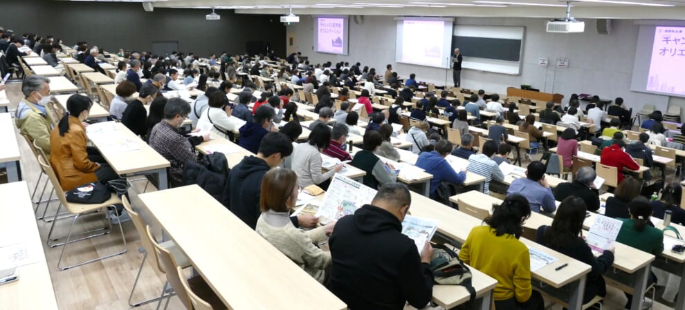 11/30(日)10:00より若木育成会キャンパス見学会が渋谷・たまプラーザキャンパスそれぞれで開催され、全国各地から在学生のご家族約500人が訪れました。見学会に先立ち、1605教室でオリエンテーションが行われ、太田直之たまプラーザキャンパス長(人間開発学部長)が歓迎の挨拶をしました。