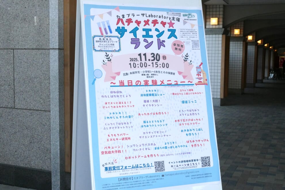 11/30(日)たまプラーザキャンパスにおいて、本学公認サークル ”たまプラーザLaboratory” が主催する、科学実験イベント「ハチャメチャ☆サイエンスランド」が開催されました。