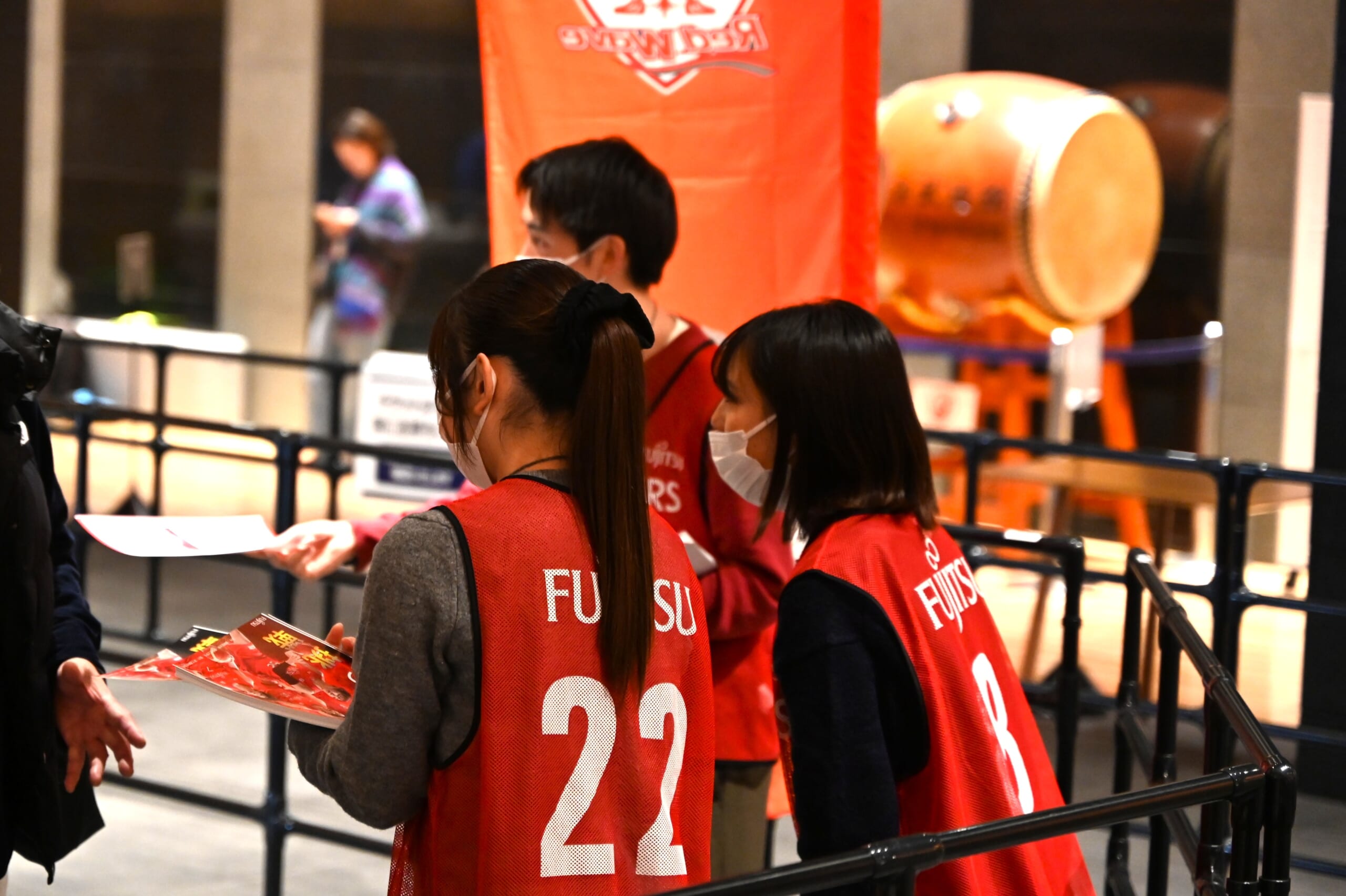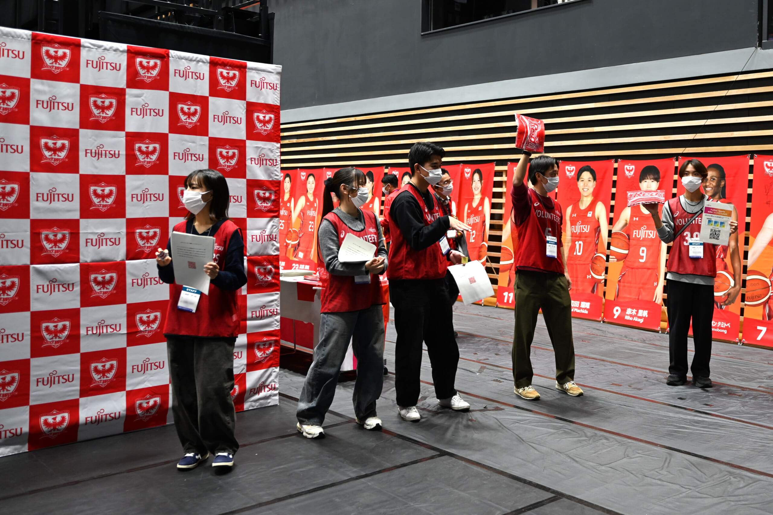 22日は、横浜武道館で行われた同社女子バスケットボール部の試合会場でブースを設け、ファンクラブ新規加入者向けのプレゼントキャンペーンやアンケートの実施など、学生たちが企画したイベントを運営しました。
