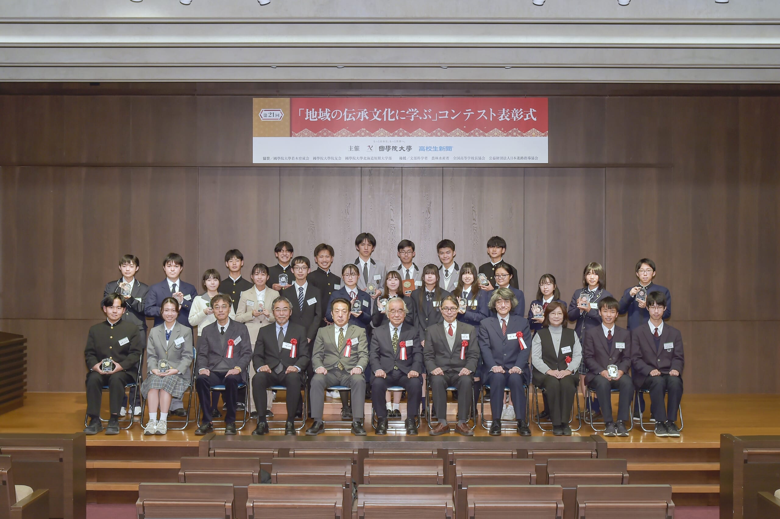 令和7(2025)年12月7日に渋谷キャンパスで、國學院大學と高校生新聞社が高校生を対象に主催する『第29回全国高校生創作コンテスト』と『第21回「地域の伝承文化に学ぶ」コンテスト』の表彰式が行われました。