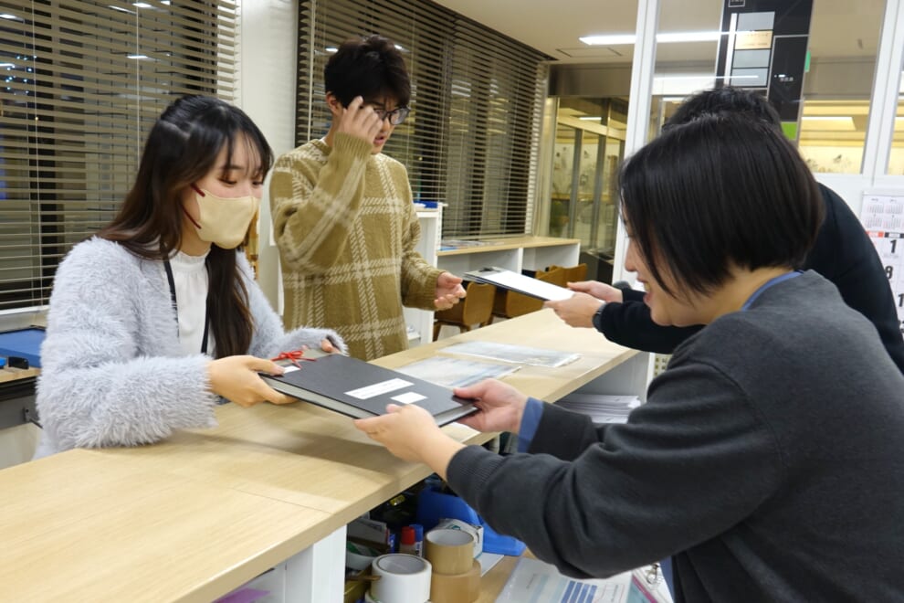 12/5(金)9:00よりたまプラーザ事務課にて、令和7年度人間開発学部4年生の卒業論文提出の受付がはじまりました。提出に余裕をもって、ゼミ生同士で一緒に提出するゼミもあります。題目の一言一句はもちろん、学生証の裏面シールの有無や中表紙の有無、ページ番号など、細かい部分にも注意が必要です。窓口で無事受理されると「卒論受理」のハンコが学生証に押されます。今年度の提出締切は12/19(金)16:30です。あと2日! 期限ぎりぎりになってあわてないよう、余裕を持って作成し提出しましょう。