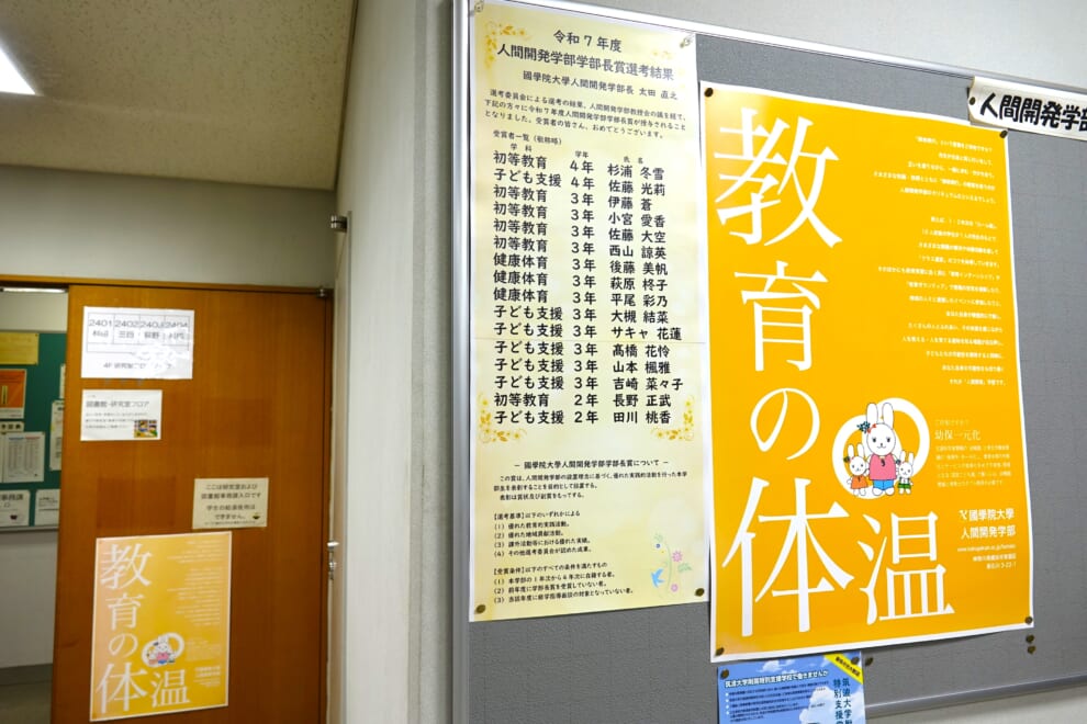 12/17(水)令和7年度人間開発学部学部長賞が決定しました。本学部の理念に基づく優れた実践的活動を行った本学部学生を表彰しています。今年度は16人が受賞し、掲示によって発表されました。受賞者の皆さん、おめでとうございます!