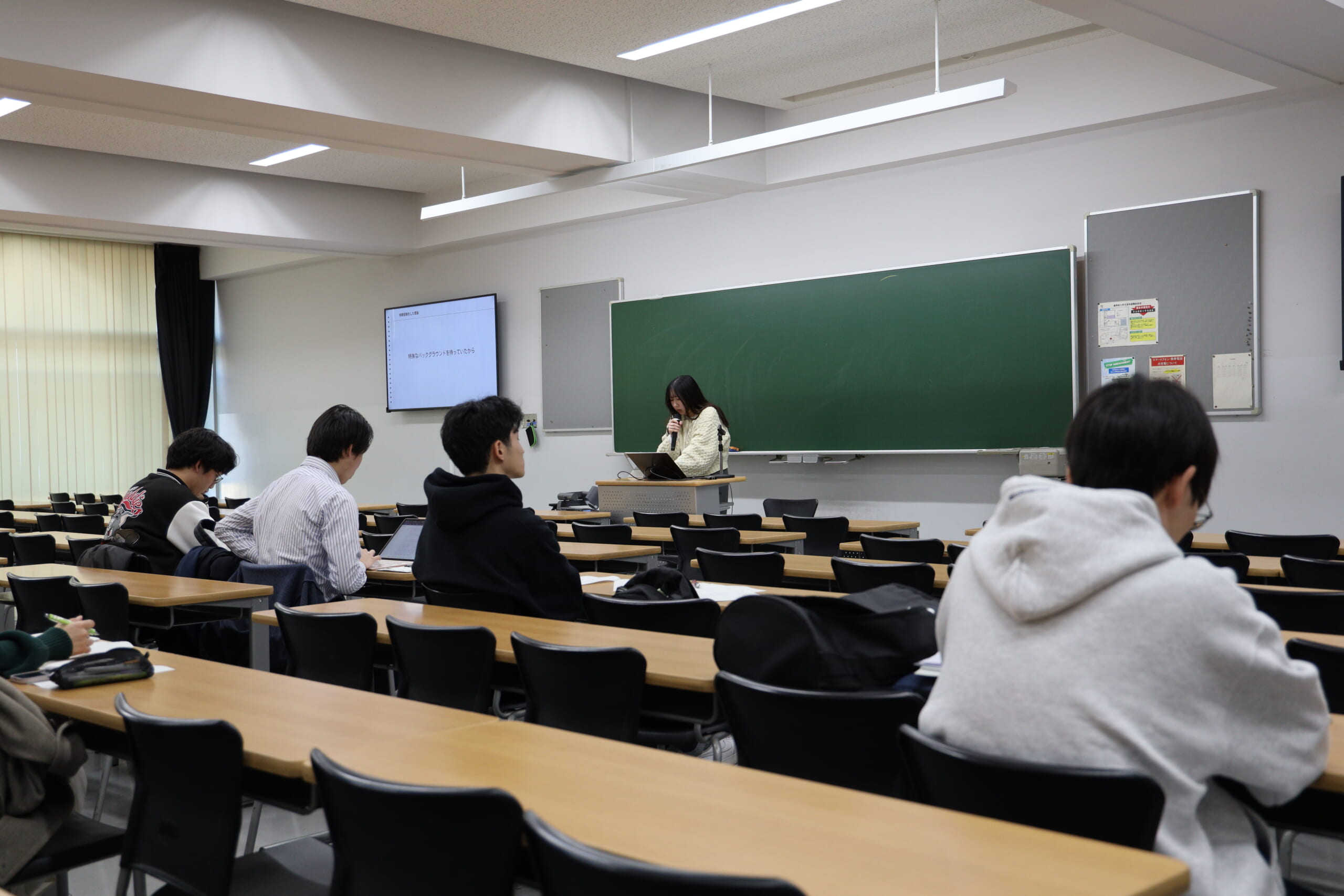本会は、在学生を対象に、難関試験の合格者による貴重な体験談を通じて、学部生の学習意欲向上を図ることを目的としています。当日は、公務員試験や法科大学院、および司法試験に合格した法学部の4年生や卒業生ら6名が登壇しました。