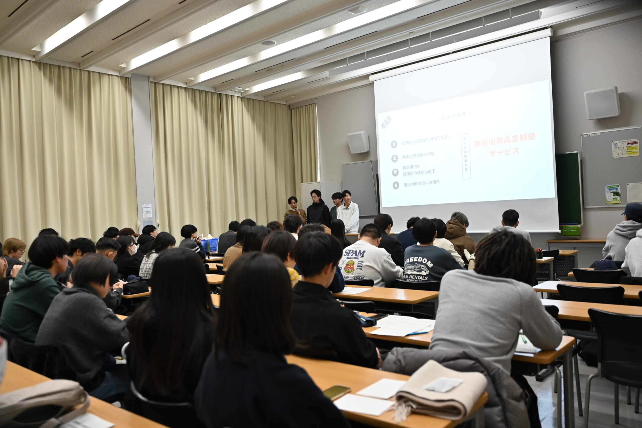 ゼミ生の研究内容や雰囲気を知ることができる機会とあって、当日は多くの学生が参加しました。ゼミ加入前の1年生や学生の父母兄弟らやも訪れ、ゼミ生たちの発表に熱心に耳を傾けていました。