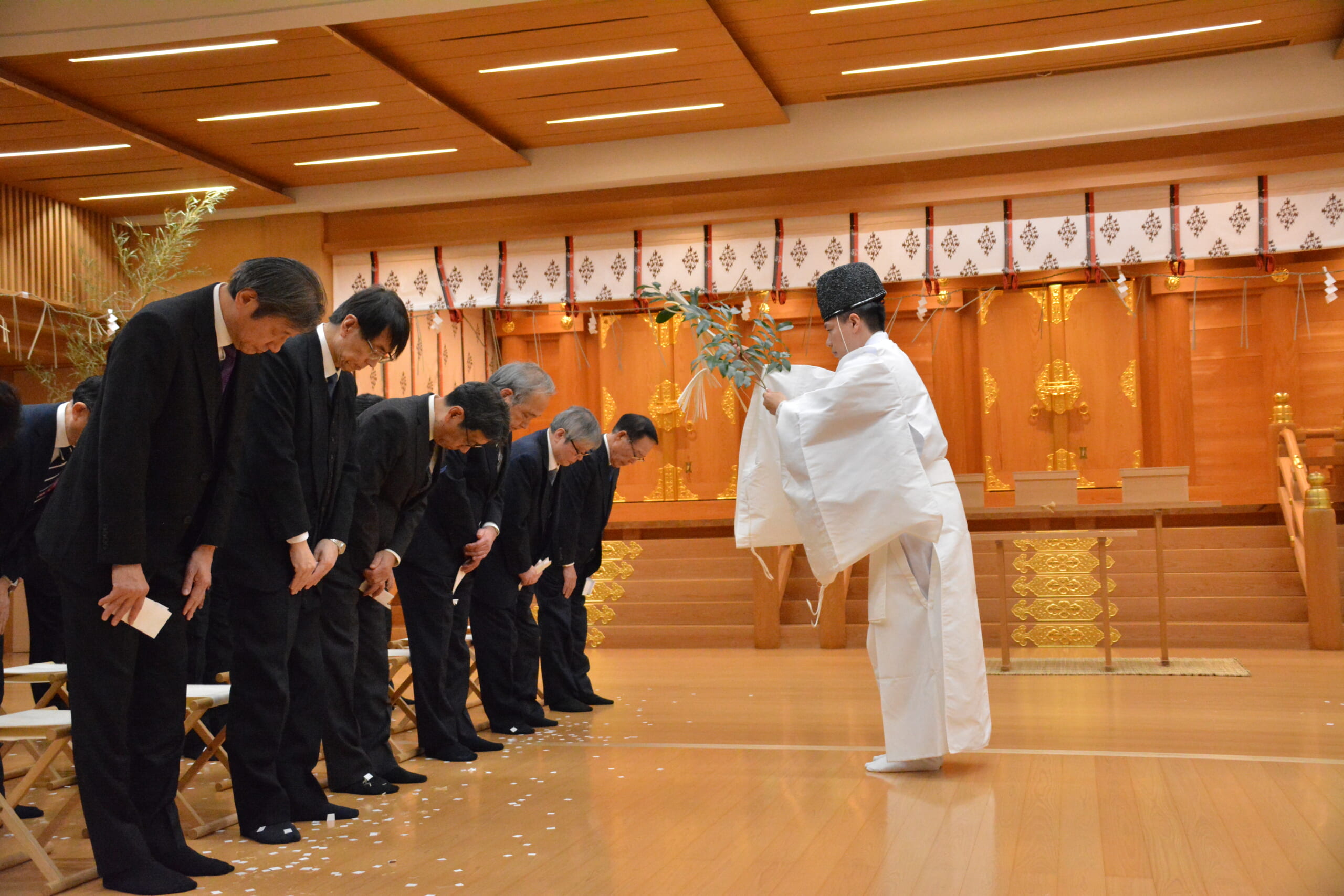 令和7(2025)年12月24日、渋谷キャンパスで年越の大祓を斎行しました。会場では、佐栁正三理事長や針本正行学長をはじめ教職員らが参列し、半年間の罪穢れを祓い清めました。