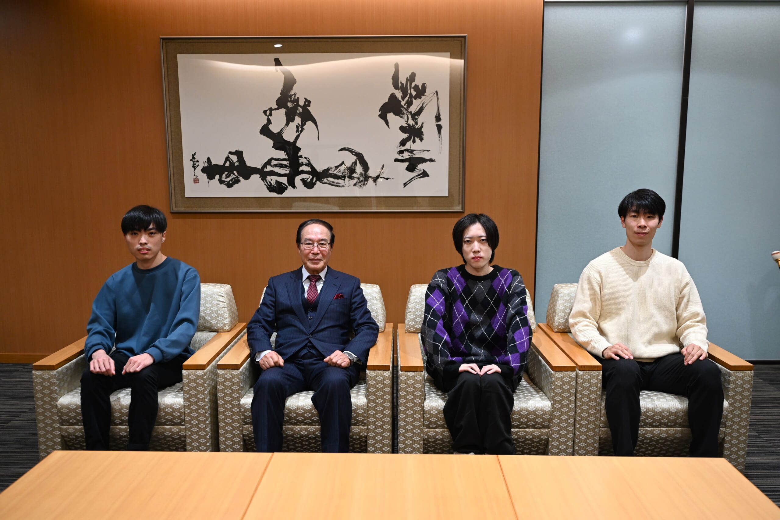 今年度は在学生3人と、卒業生1人の計4人が合格を果たしました。本日は在学生の瀧上英治さん(経営4)、樂滿凜さん(法4)、菅原哲さん(経営3)が佐栁理事長への報告を行いました。なお、瀧上さんと菅原さんはK-PLAS公認会計士試験支援奨学生で、同奨学生からの合格者輩出は5年連続となります。