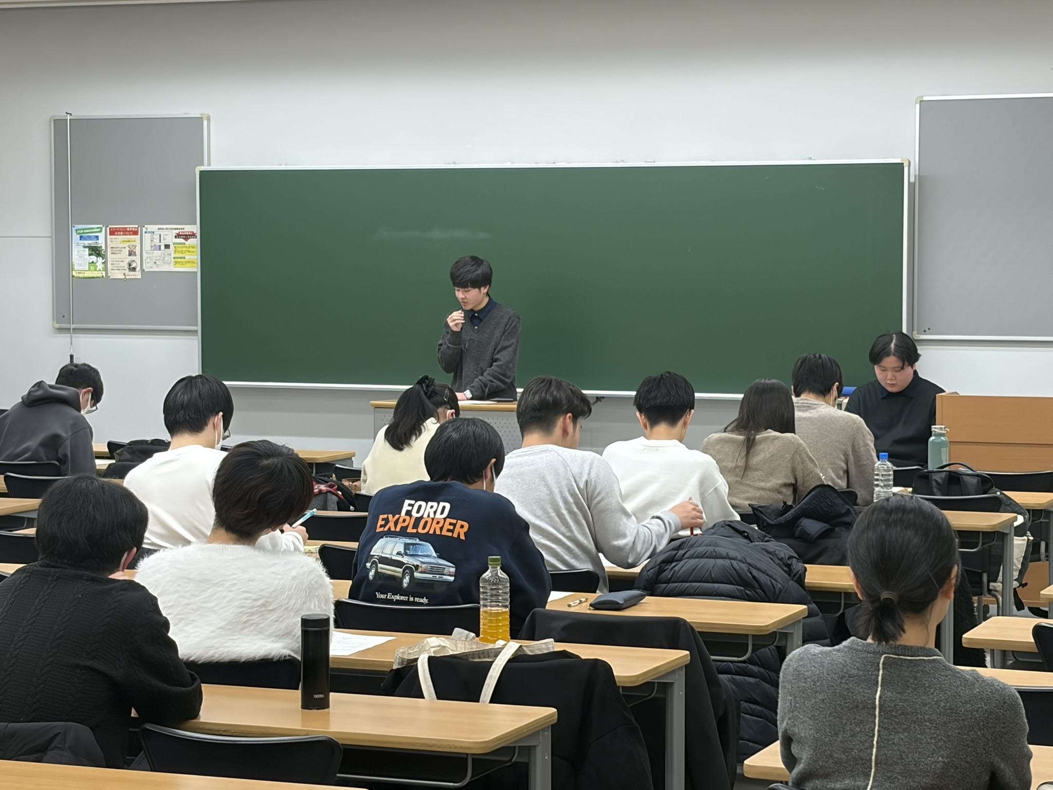 まもなく公務員として就職を迎える先輩からは、公務員試験合格のために3年生の頃からどんな計画を立て、どのような学修を積み重ねてきたか等のリアルな経験談が語られ、継続試験を受け終わったばかりの2年生は真剣に聞き入っていました。
