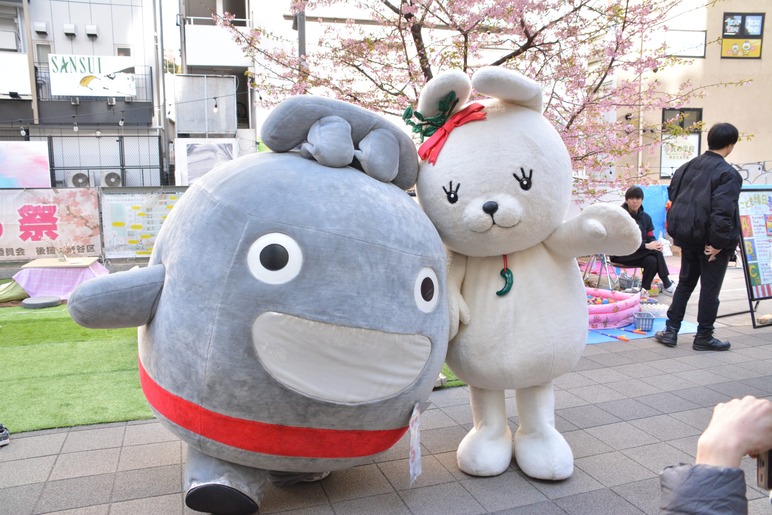 2月21日には、東急電鉄の“のるるん”と本学の“こくぴょん”の、2団体のマスコットキャラクターが登場し、周囲は多くの人たちであふれかえっていました。