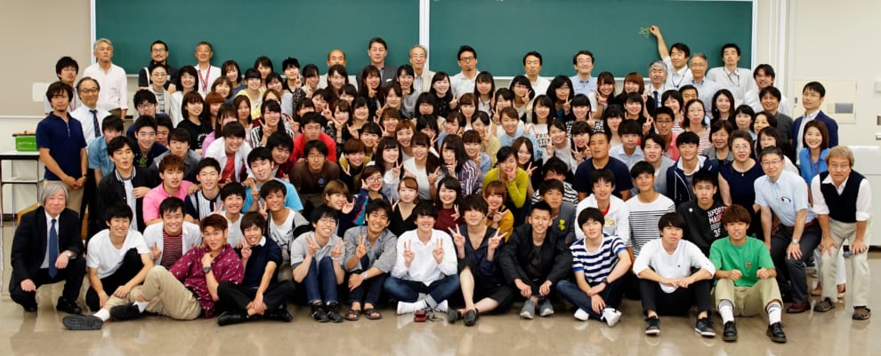 6/6(水)605教室で2018年度入学生の集合写真を撮影しました。毎年中庭で撮影するのが恒例でしたが、あいにくの雨続き。学部開設10年目にして初めての屋内撮影となりました。