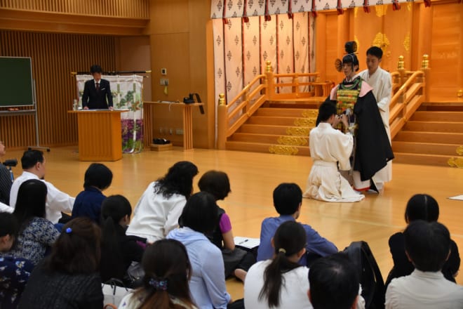 去る6月23日(土)、本学の祭式教室にて「宮廷装束の着装披露」が行われました。
