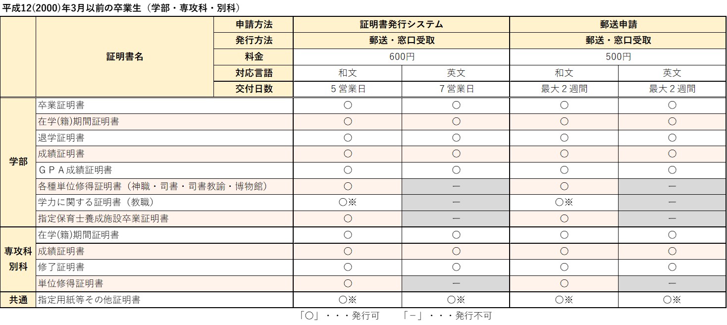 ※特にお申し出のない限り、在学当時の氏名で発行します